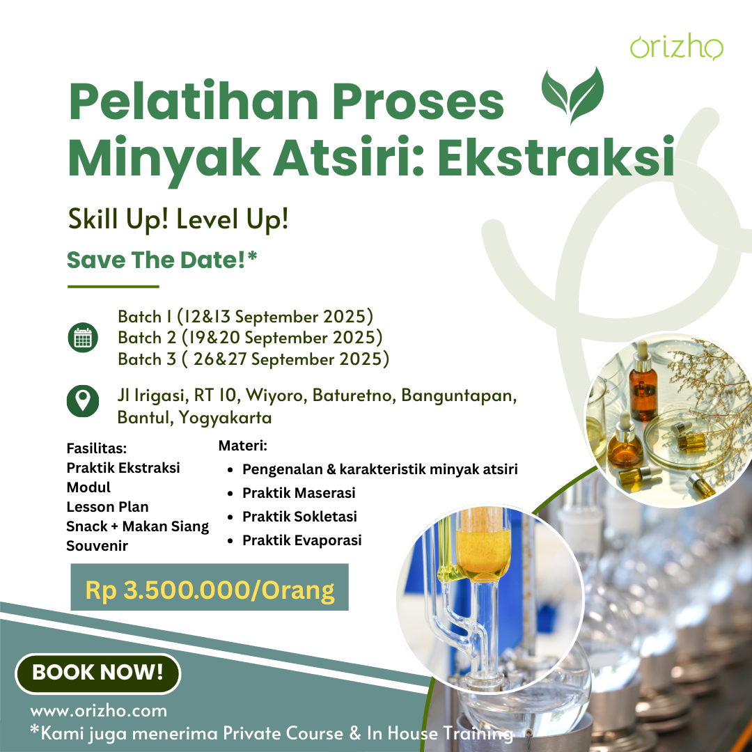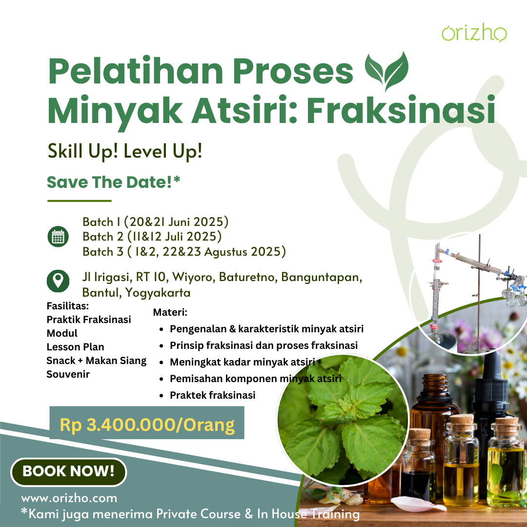 Orizho Indonesia adalah Jasa pelatihan minyak atsiri yang bertujuan agar terciptanya tenaga kerja yang terampil, mendukung pengembangan industri lokal, dan mendorong lahirnya wirausaha baru di bidang minyak atsiri.