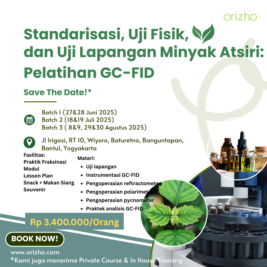 Program edukasi berkelanjutan yang dirancang untuk memperdalam pengetahuan dan keterampilan peserta dalam bidang pengolahan minyak atsiri. Program ini menggabungkan pembelajaran teori dan praktik langsung, serta mendorong kolaborasi antarpeserta untuk menciptakan inovasi dalam industri minyak atsiri.